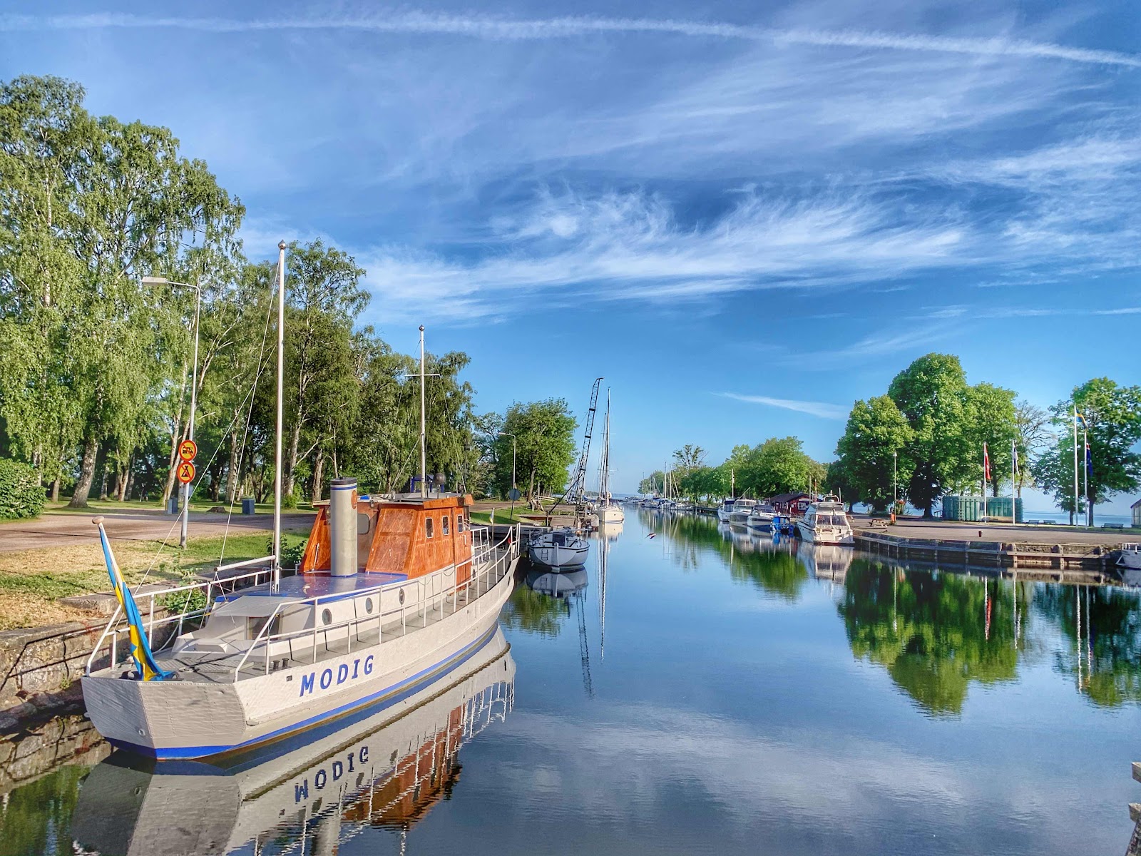 Från Stolplycke anar man Hästholmens hamn, där man lagt ner ställplats och camping. Ny ställplats längre bort. Inte lika roligt.